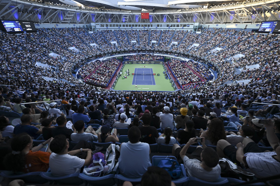 10月11日,焦科维奇在比赛后向观众挥手致意。新华社记者 陈浩明 摄